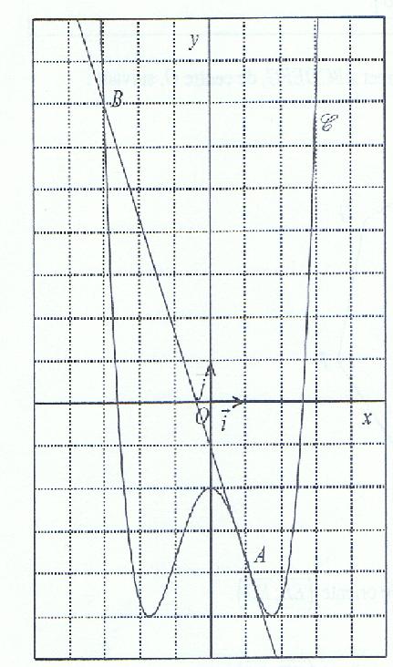 On donne ci dessous dans un repere(O,I,J) du plan une partie de la courbe représentative C de f et la droite (AB) passant par les points A et b de C d'abcisses respectives 1 et -31)démontrer que f est dérivable en 0 et indiquer le nombre dérivé f en 0